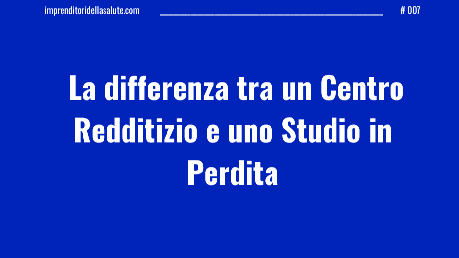 La differenza tra un centro Redditizio e uno studio in Perdita. Il ruolo del costo di struttura e della tua capacità produttiva.